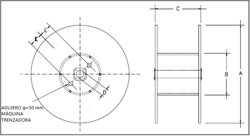 El cable será entregado por el fabricante en una bobina de madera o metal, que no será devuelta, según las dimensiones máximas y mínimas indicadas en la Tabla 6 y de acuerdo con la Figura de esta.