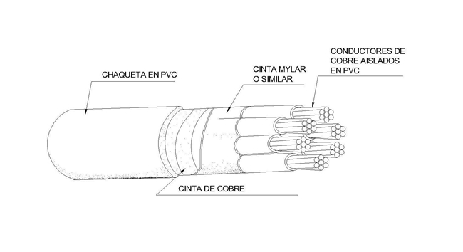El material de los conductores es cobre blando; el aislamiento de cada conductor y la chaqueta del cable multi-conductor es en PVC.Los cables normalizados por la Empresa son: