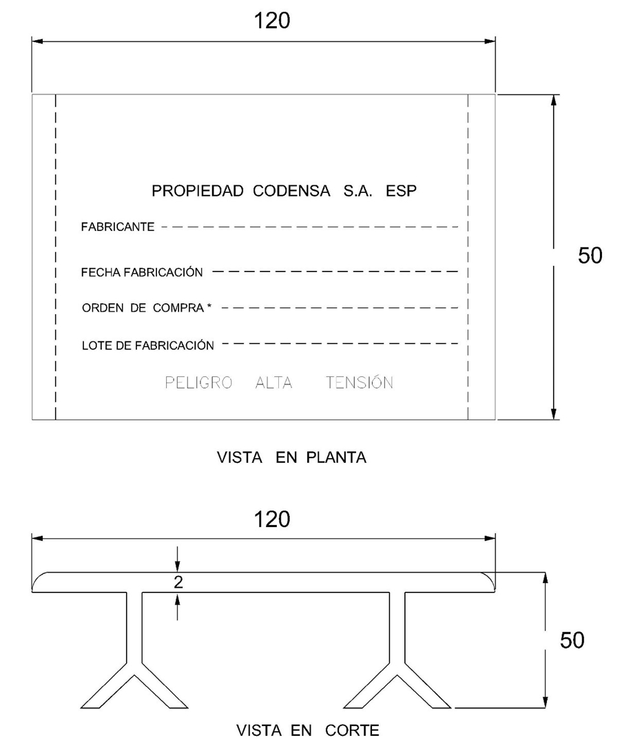 En el aro fundido tendrá un letrero que diga “Propiedad de Enel Colombia – PELIGRO ALTA TENSIÓN – identificación del fabricante (nombre o logotipo)”.