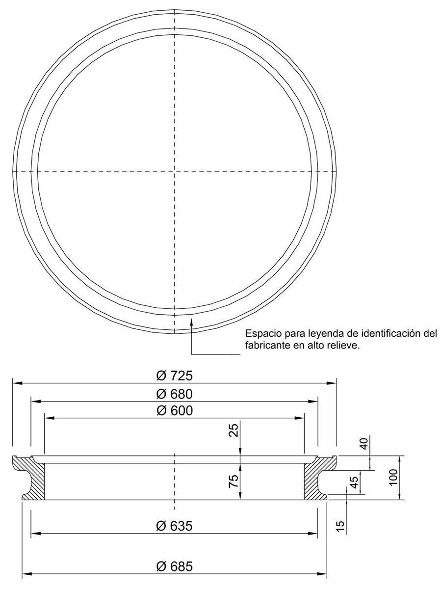 FIGURA 2 - Marco para tapa de inspección de 63 cm para vías vehiculares