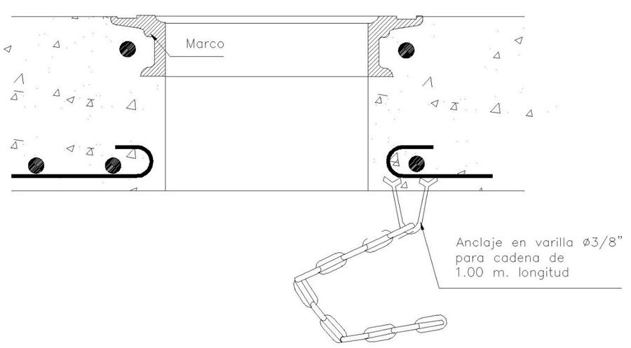 FIGURA 1 - Marco Metálico para Tapas Tipo Vías Vehiculares, sistema de seguridad por anclaje con cadena