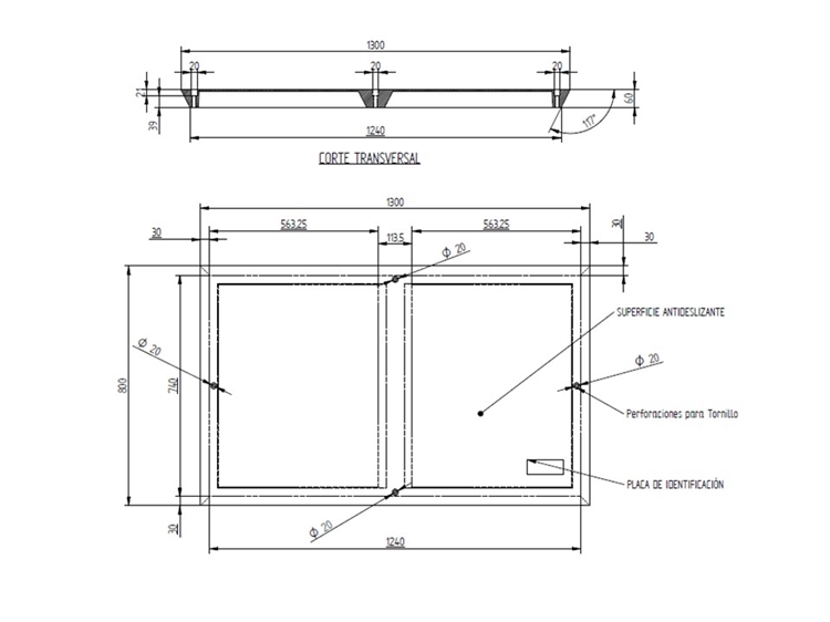 Las tapas podrán traer refuerzos en la parte inferior del mismo material, para garantizar estabilidad y cumplir con los requisitos de carga, deflexión y rotura.