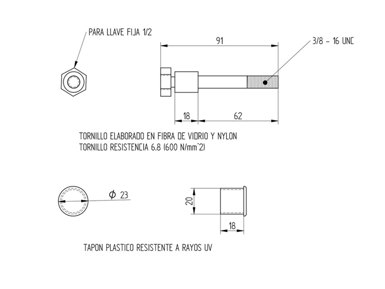 Para cubrir el tornillo y dejar el hueco a nivel de la tapa llevara tapones de Ø 20 mm x 18 mm o ver figura No. 6.