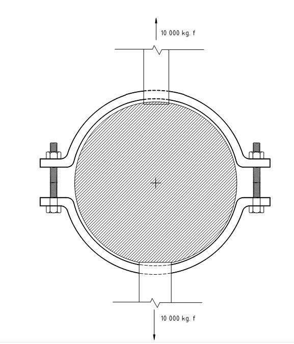 Las abrazaderas deben poder soportar una carga mínima de 40 kN (4080 kg-f) según el montaje de ensayos mostrados en la figura 2 sin que se presenten agrietamientos o roturas. Mantener la carga por un minuto. Llevar a carga de rotura con un valor mínimo de 58,8 kN (6000 kg-f).