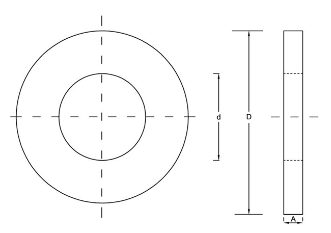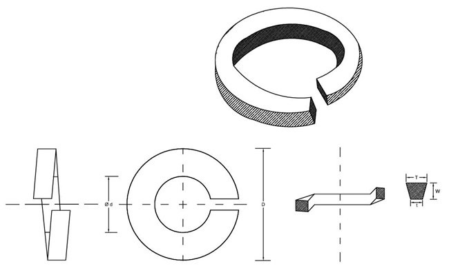 Las dimensiones de las arandelas planas son a solicitud de la empresa pero si no se indica nada diferente se referirá a las mostradas en las figuras 1 y 2, las arandelas de presión helicoidales tendrán las dimensiones de la figura 3