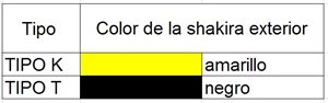 En la tabla 3 y tabla 4 se muestran cómo se deben realizar la identificación del tipo K o T, según el nivel de tensión en la primera shakira ó la del lado exterior: