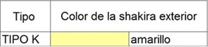 En la tabla 2, se describe la convención para la identificación de las shakiras: