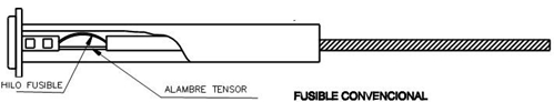 Según NTC 2132 N° 4.4.6, el fusible debe soportar un esfuerzo de tracción de 4,5kg, sin presentar daño mecánico de los hilos del fusible.