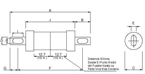 c La longitud del cuerpo cilíndrico puede ser inferior al valor indicado si existen otros elementos aceptables que interfieran tal como pernos a través de las láminas o collares, estos últimos se proporcionan para evitar el montaje del fusible en un portafusible que permita acomodar uno clasificado como el siguiente más bajo dentro del rango de corriente.