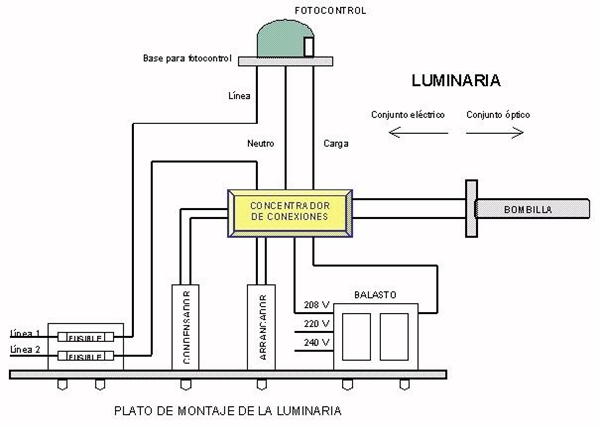 - Para el conjunto eléctrico de la luminaria (balasto, condensador y arrancador), no se acepta que estos equipos estén provistos de terminales tipo bornera.