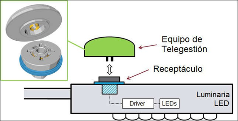 • Conjunto eléctrico: Es la parte de la luminaria que contiene los equipos eléctricos y electrónicos capaces de conectar, transformar y adaptar la tensión eléctrica de la red de alimentación de baja tensión a los módulos LED que conforman el conjunto óptico.