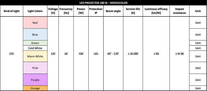 - Proyector LED 100W - IP 65 – MONOCOLOR