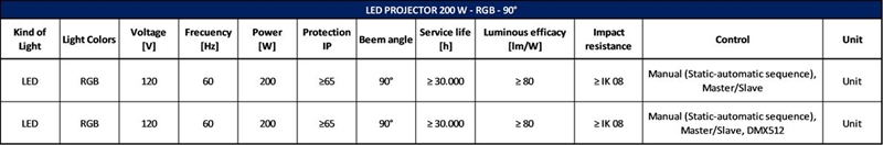 - Proyector LED 200W - IP 65 - RGBW– DMX