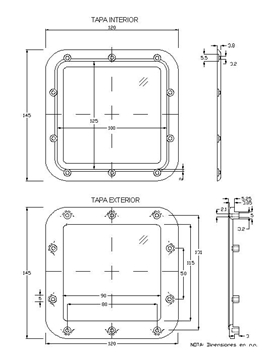 Se cuenta con tres puertas para este compartimiento, cada una con un visor localizado en la parte superior. El mencionado visor posee un marco (145 x 120 mm) y una transparencia de seguridad en policarbonato de 3 mm de espesor (125mm x 100mm).