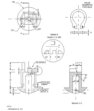 La puerta cuenta con un orificio para el buje de cerradura de 16 mm con perno RW ¼” y una perforación que permita la instalación de un sello de seguridad de la compañía. La localización del centro del buje triangular debe ser concéntrica con la rosca que lo recibe.
