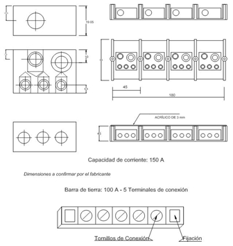 En la base de la caja se deben colocar los medios para soportar el terminal de tierra de 100 A, además de darle la altura suficiente para que sobresalga, logrando así facilidad en la conexión.