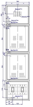 DIMENSIONES GENERALES COMPARTIMIENTO BARRAJES CAJA VERTICAL PARA DOS MEDIDORES TRIFÁSICOS