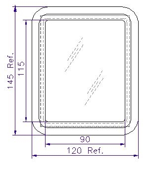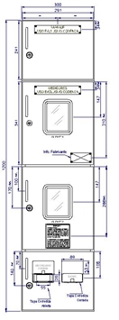 En el área frontal de las dos puertas centrales correspondientes a los compartimientos de los medidores, se ubican las ventanas de inspección con un marco (145 x 120 mm) y una transparencia de seguridad en policarbonato de alto impacto con un espesor de 3 mm minimo (125 x 100 mm), el marco y el visor únicamente se podrán desensamblar desde el interior de la caja.