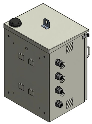 Los costados y la base de la caja deben poseer perforaciones como las indicadas en las figuras de estas especificaciones. En total son 18 perforaciones, 8 con prensa estopas PG29 en los costados y una prensa estopa PG21 en la base, 8 perforaciones con tapa metálica para prensa estopa PG29 en los costados y una para prensa estopa para PG21 en la base, aseguradas desde su interior.