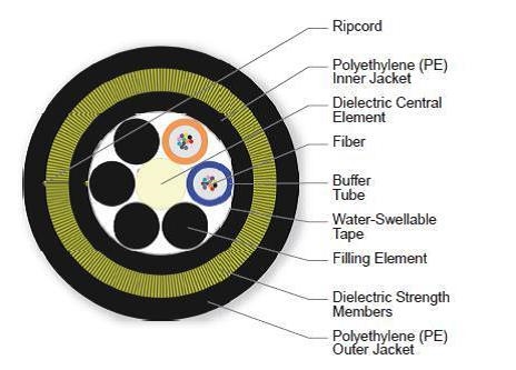En el interior de la primera cubierta se aloja el núcleo óptico formado por un elemento central mecánicamente resistente, por tubos holgados que alojarán las fibras, en cuyo interior se dispondrá de un gel anti-humedad y absorbente de hidrogeno. Todo el conjunto estará envuelto por unas cintas de sujeción y protección. SPAN: 1000