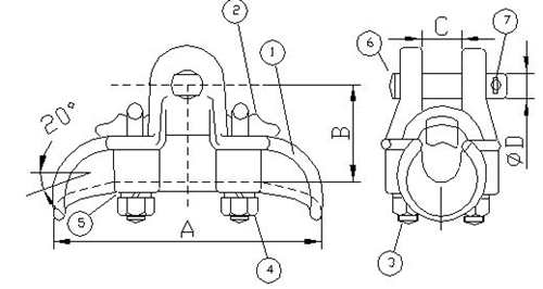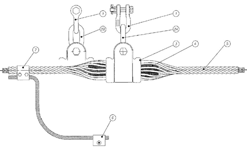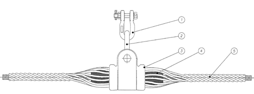 Grapas de suspensión y retención: Herrajes que se utilizan para transmitir a la estructura directamente o a través de la cadena de aisladores, los esfuerzos producidos por el peso del cable , la fuerza del viento, los esfuerzos de tracción del cable debidos a su carga mecánica y a los ángulos de deflexión de la línea.