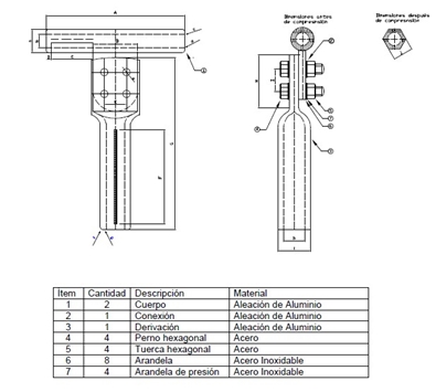 • Rango de diámetros de conductor o códigos de conductor, según se acuerde (cuando aplique).