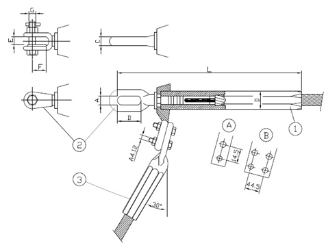 Los elementos de retención de conductores o cable de guardia deberán ser del tipo a compresión, en cuyo caso deberán tener elementos de regulación, o bien grapa de tipo cable pasante, garantizando simultáneamente las características mecánicas y eléctricas para cada uso en particular, aún en estados límites de tensión mecánica y temperatura. Sus extremidades serán cónicas con superficie de contacto adecuado que no provoquen daño a los conductores o cables de guarda.