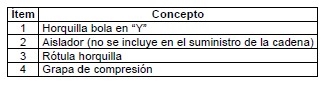 Los elementos de acople de los herrajes para cadenas, considerados en esta norma, serán en: bola y cuenca (rótula); según norma IEC 60120