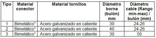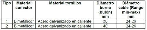 Los conectores serán del tipo atornillable con apriete independiente en cada lado con el objeto de permitir su fácil instalación y desmontaje sin necesidad de herramientas especiales.