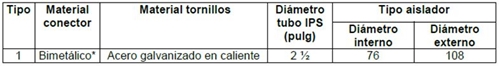 Tabla A.2.22 CONECTOR DE EXPANSIÓN TIPO TUBO A TUBO CON SOPORTE FIJO A AISLADOR