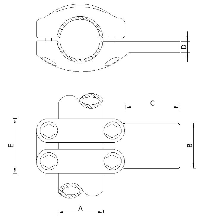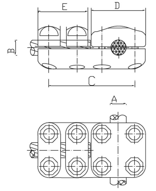 - La parte superior del cuerpo del conector se compone de diferentes secciones atornilladas, este tipo de construcción permite distribuir de manera uniforme las fuerzas de compresión sobre los elementos interconectados cuando el conector está cerrado.