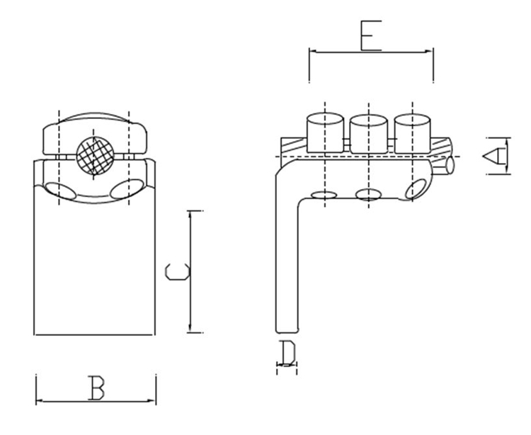Conector de derivación: Es un conector en ángulo que une el conductor de una derivación al conductor principal en un ángulo especificado.