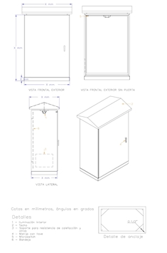 La estructura, envolventes y techo debe estar construida con perfiles estructurales de lámina Galvanizada G60 calibre 14 (2 mm). El piso se debe construir en calibre 14 (2 mm) con lámina de aluminio para ser perforada para la correspondiente entrada/salida de cables.