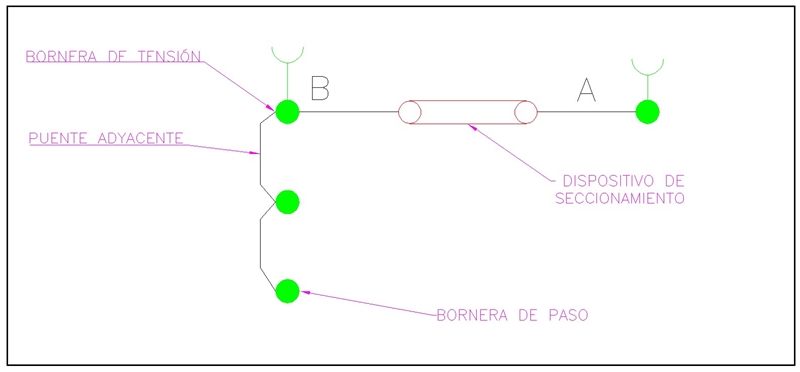 El sistema de seccionamiento se diferencia de las borneras de tensión en que son bornes de menor tamaño, dado que las corrientes que circulan por este tipo de bornes son de menor intensidad .