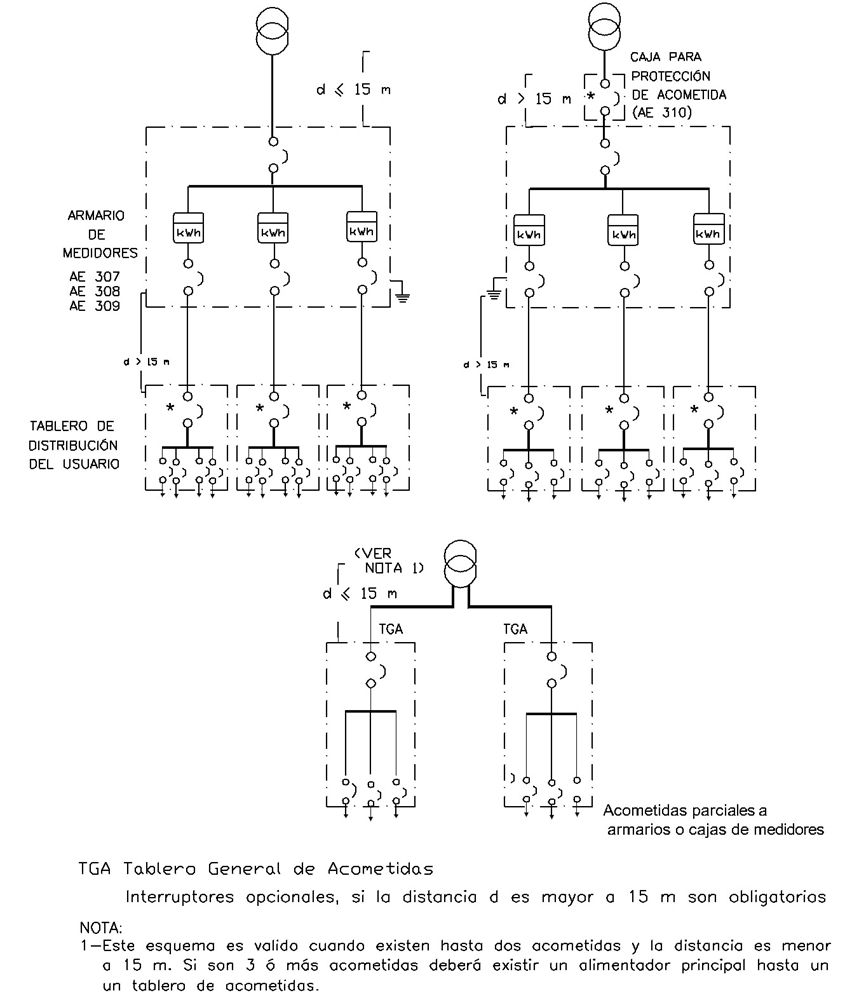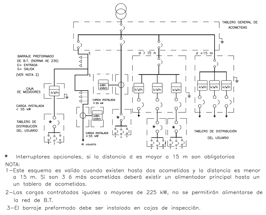 AE201-1 Diagramas unifilares para acometidas de B.T. desde transformadores dedicados de distribución