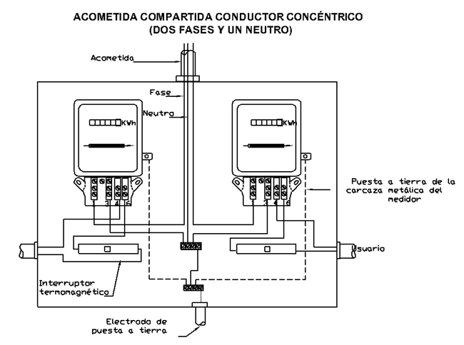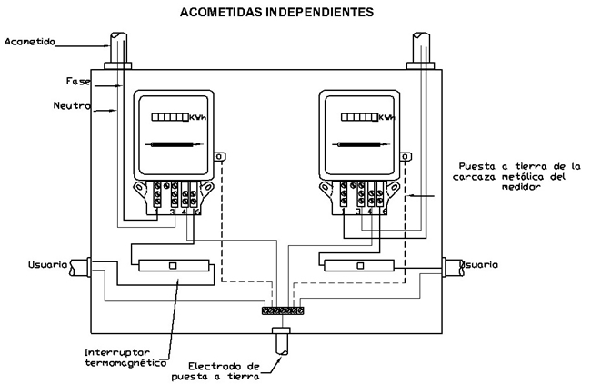 AE203-2 Acometida - Esquema de conexión para caja de dos medidores monofásicos