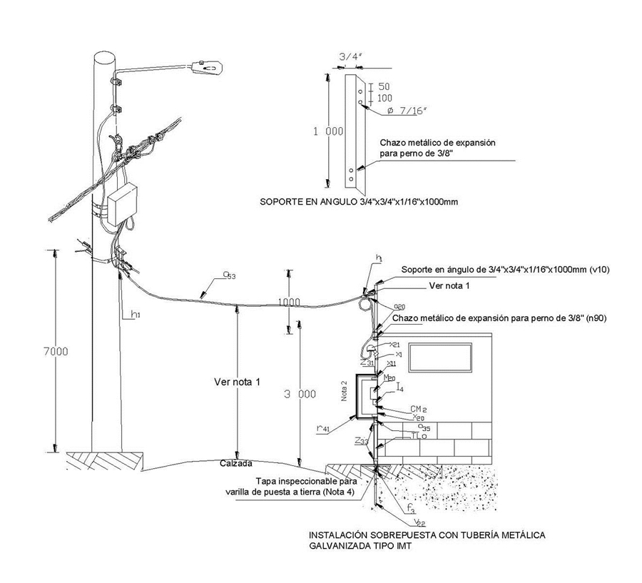 | o 53 | 20 (*) | Metros de cable de cobre aislado con neutro concéntrico 600 V 2 x 8 AWG (Nota 3) | ||