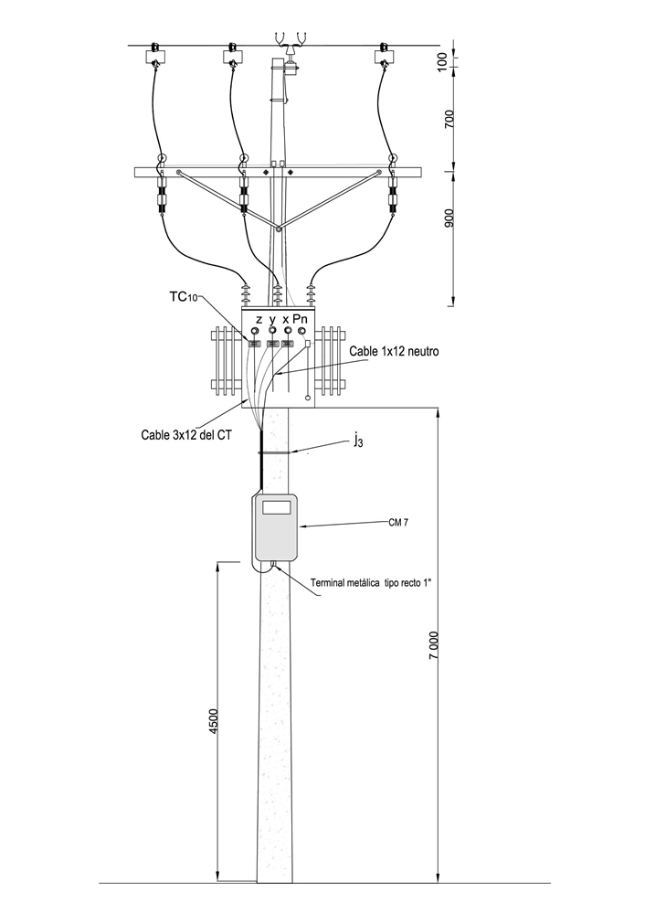 - Este montaje se utiliza para la macromedición de transformadores de distribución en poste, a nivel de BT. Como son estructuras utilizadas para proyectos de la compañía, su uso debe ser consultado y autorizado previamente a la instalación.