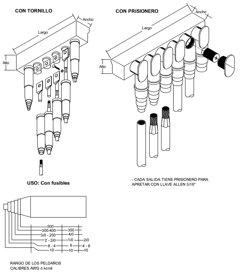 3. Los barrajes de B.T para calibres mayores a 2/0 AWG deben instalarse en cajas de inspección CS 276 para facilitar las labores de instalación y matenimiento.