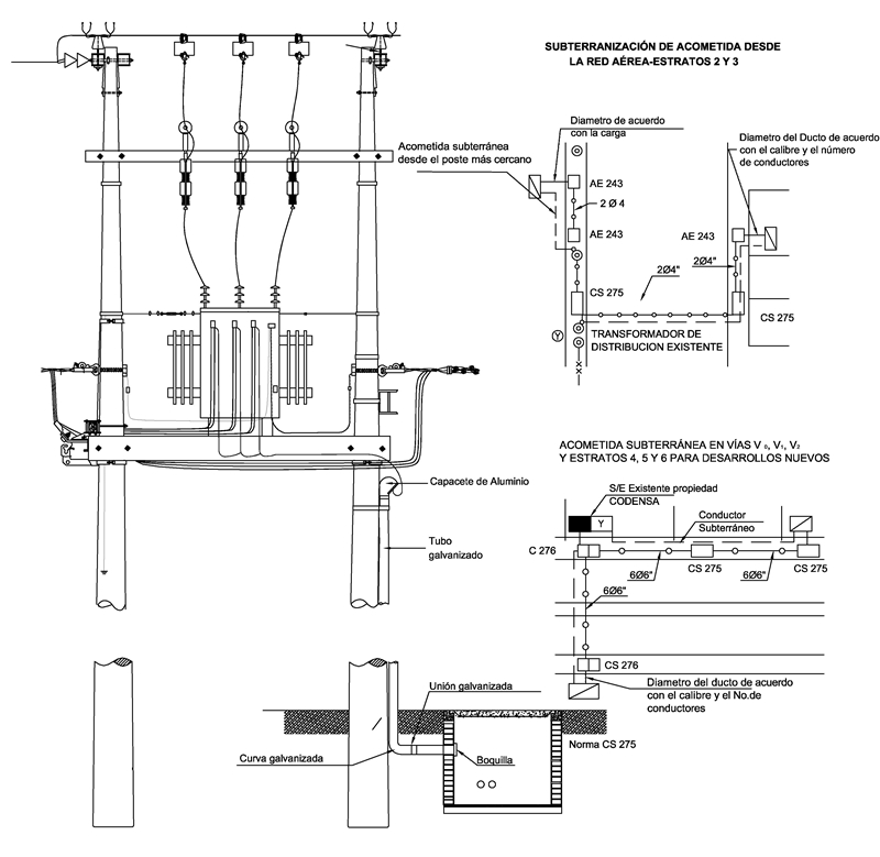 - Para acometidas aéreas se permite hasta el calibre N°2 AWG. Para calibres mayores deben ser subterráneos.