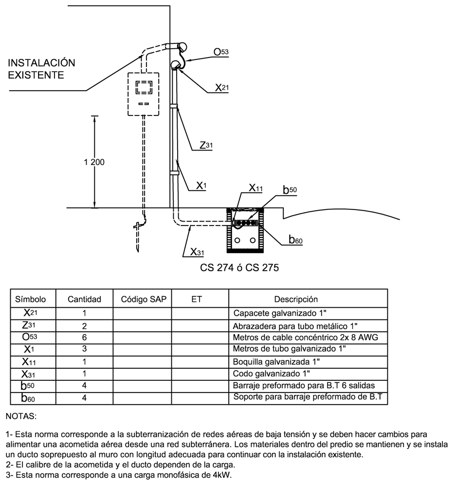 AE240 Acometida Aerea De B.T. Alimentada De Una Red Subterranea. Instalación Sobrepuesta