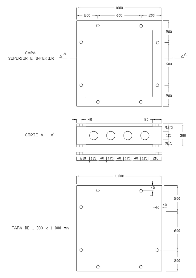 - Aquí se ilustra una caja de inspección metálica de 1000x1000x300mm con 4Ø4"