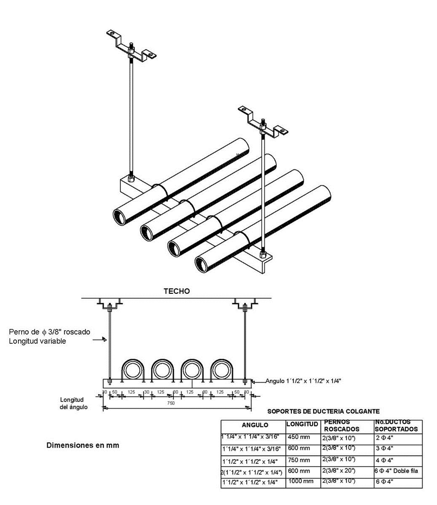 AE288 Detalles para soporte de ductería en sotanos