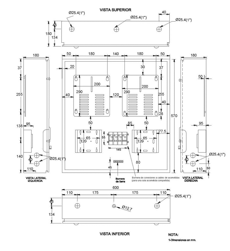 AE304 Caja para dos medidores bifásicos o trifásicos. Especificaciones generales