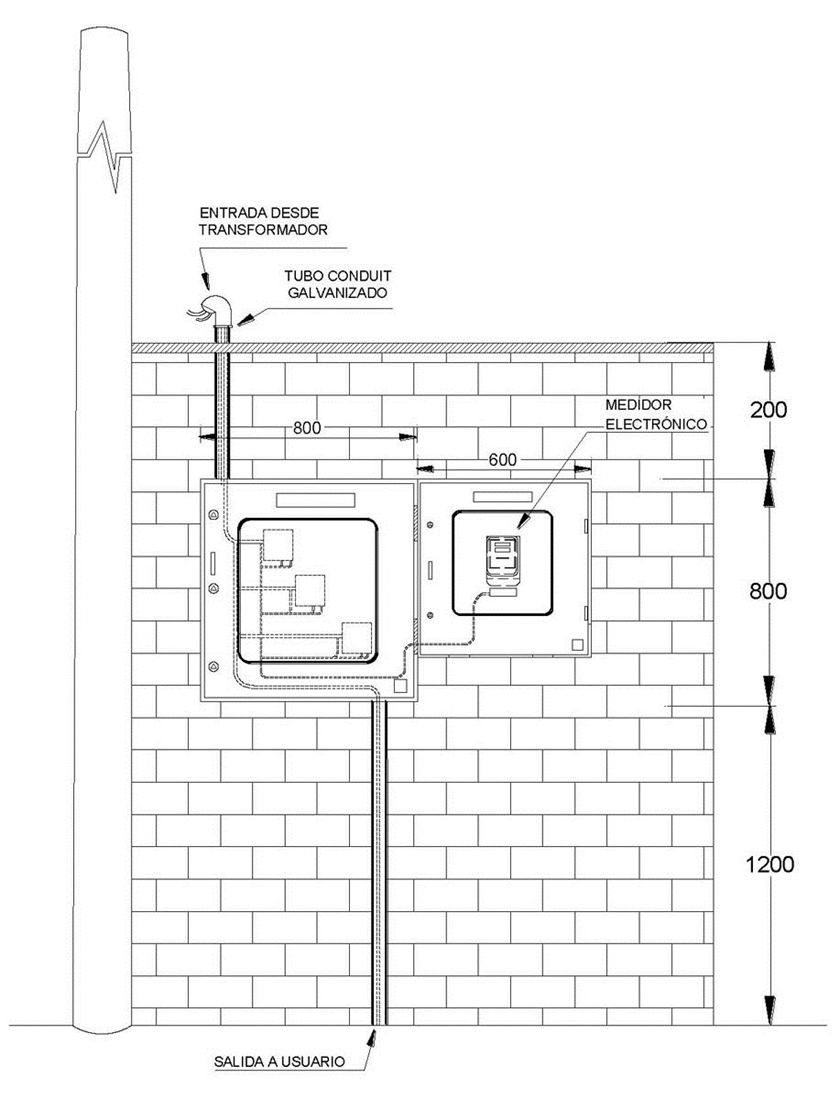 AE321-3 Instalación de equipo de medida en B.T. Alternativa 4: en muro adyacente al poste