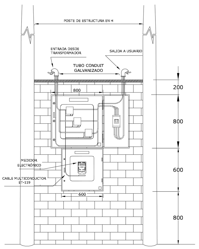 AE321 Instalación de equipo de medida en B.T. Alternativa 1: En muro con salida aérea