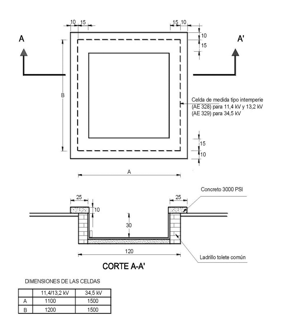 AE344 Base Y Foso Para Celda De Medida Tipo Intemperie De 11,4-13,2-34,5 KV