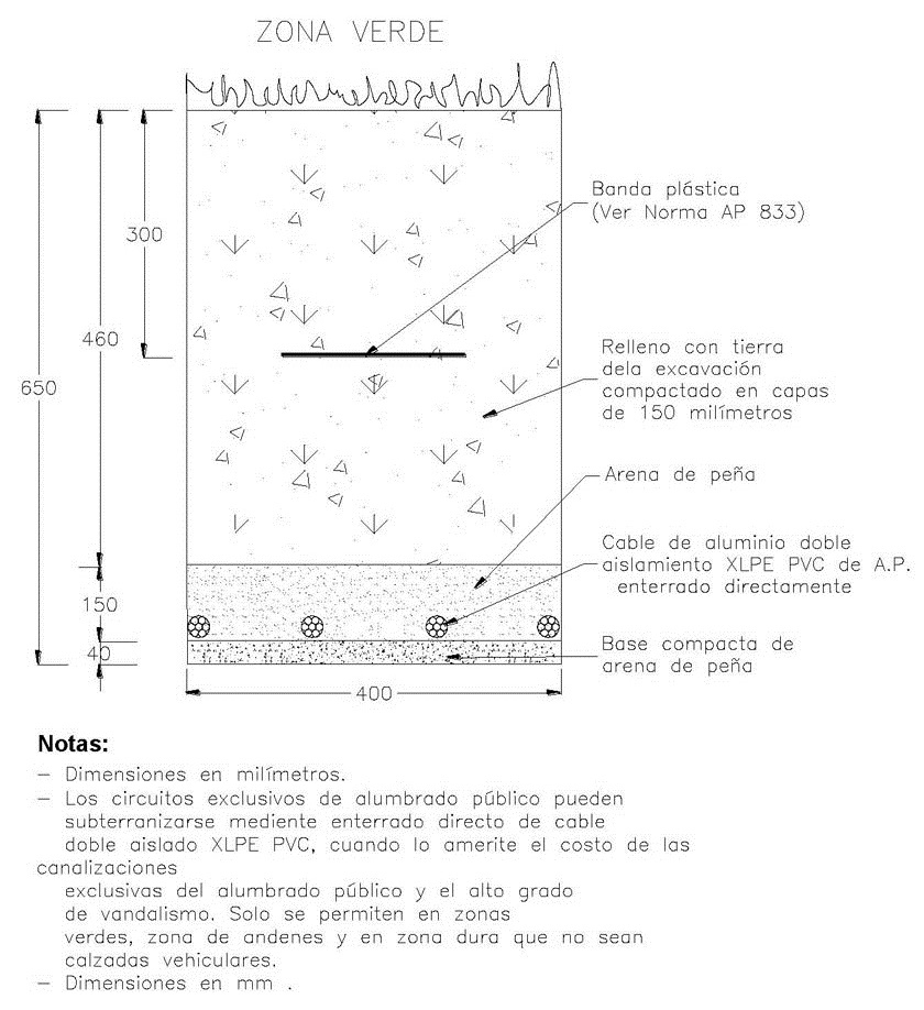 AP221 Detalle De La Zanja Y Relleno Para El Enterrado Directo Del Cable