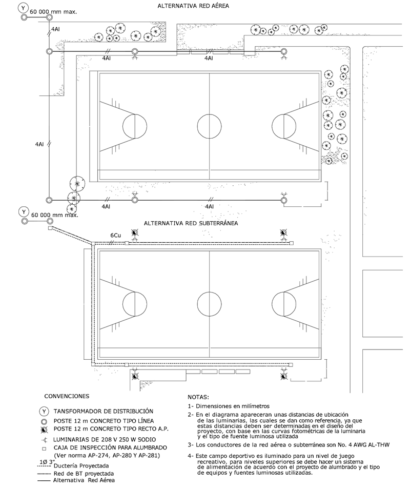 AP316 Alternativas de alimentación para iluminación de una cancha de baloncesto nivel recreativo