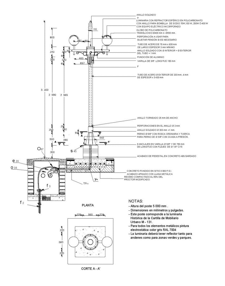 2- La potencia de la luminaria podrá variar dependiendo del diseño (70 a 400 W)